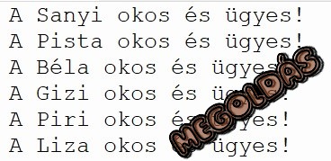 Bejárós ciklus segítségével írasd ki, hogy okosak és ügyesek! Megoldás: "Béla okos és ügyes. Pista okos és ügyes. …"
