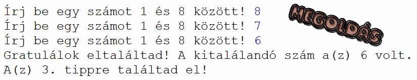 "Gratulálok eltaláltad! A kitalálandó szám a(z) 5 volt. A(z) 3. tippre találtad el!"